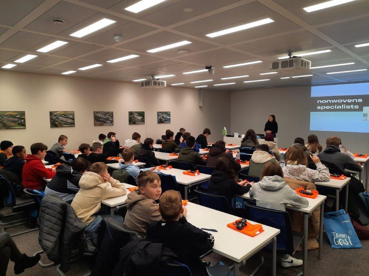Im Rahmen der Berufsorientierungsmaßnahmen besuchte die 7. und 8. Klasse zusammen mit Frau Matheis und Herrn Bergmann die Firma Sandler in Schwarzenbach/Saale. Nach grundlegenden Informationen und einem Besuch der Ausbildungswerkstätte führte uns Frau Schuberth durch das Werk und erklärte, wie Vliesstoffe auf Grundlage angelieferter Fasern entstehen. Dabei konnten die Schülerinnen und Schüler auf anschauliche Weise den Produktionsprozess nachverfolgen.