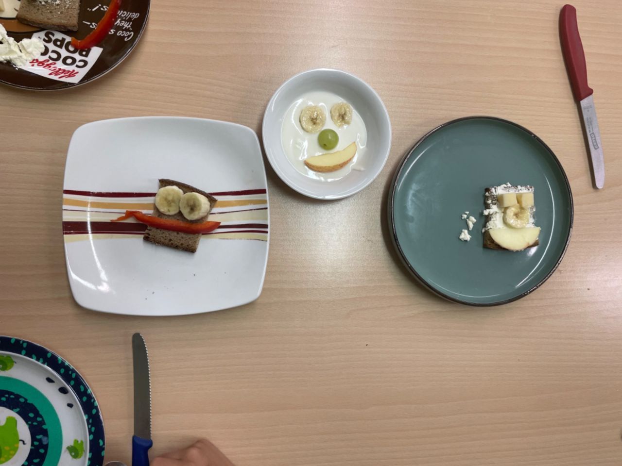 Die Klassen 1a und 1b beschäftigten sich in der „Woche der Nachhaltigkeit“ mit gesunder Ernährung. Nachdem die Ernährungspyramide untersucht wurde, zeigten die Kinder ihr Wissen in der Praxis und bereiteten ein gesundes Frühstück zu. Dabei entstanden tolle Obst- und Gemüsegesichter.
