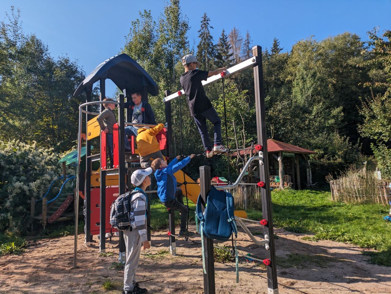 Weiter ging es dann auf einen nahegelegenen Spielplatz. Dort wurde sich richtig ausgetobt und Brotzeit gemacht, bevor es dann mit dem Bus weiter zum Porzellanikon ging.