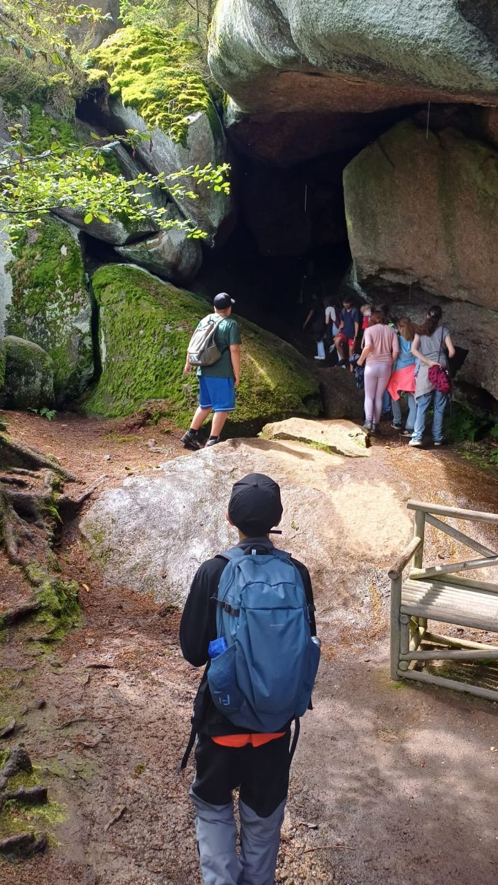 Vom ersten Tag gestärkt machte man sich direkt auf den Weg zum Felsenlabyrinth. Am Gipfel angekommen, versorgten man sich mit der mitgebrachten Lunchbox und konnte eine tolle Aussicht genießen. Anschließend erholte man sich im Freibad von der anstrengenden Wanderung und frischte sich im kühlen Nass ab. Nach einem zünftigen Grillabend gaben die Schülerinnen und Schüler noch einmal in der hauseigenen Disko alles. Erschöpft aber glücklich wurden sie am nächsten Tag von ihren Eltern abgeholt.