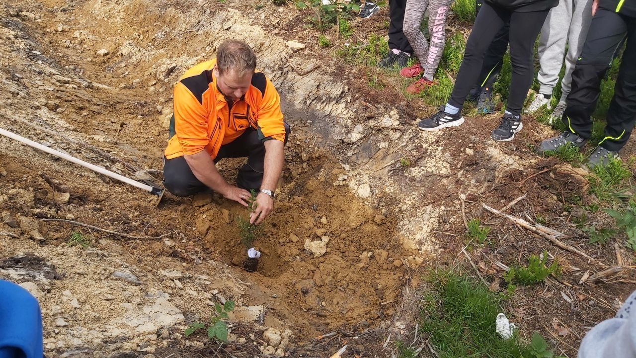 Die Schüler der Klasse 7 machte sich den Klimawandel und das damit verbundene Baumsterben zum Thema. Zusammen mit dem Stadtförster Kilian Stöcker und Bernd Müller pflanzten sie verschiedene Baumsorten für einen „Zukunftswald“, die den neuen Anforderungen gewachsen sein sollen.