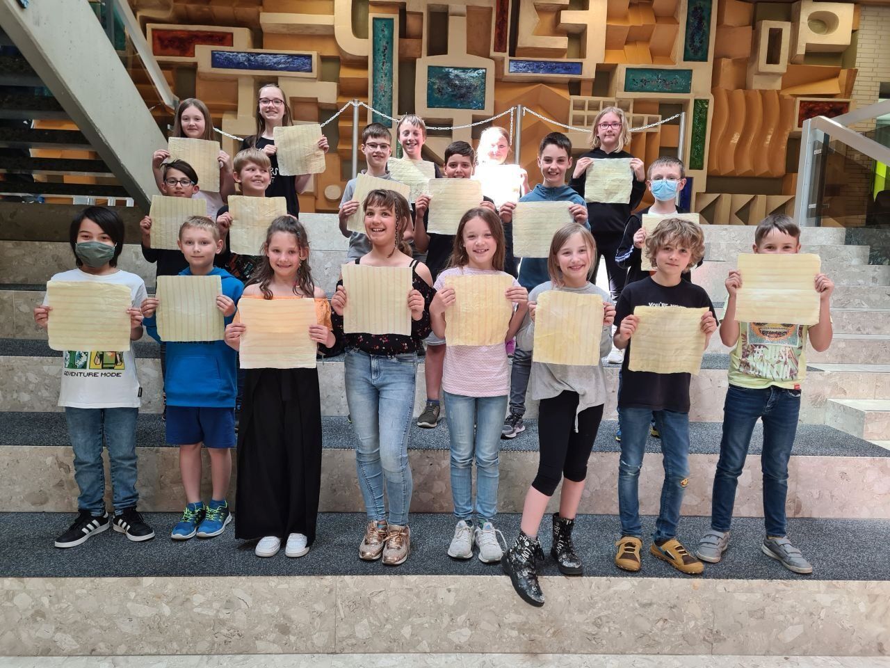 Die 4. Klasse hatte das Thema „Plastikmüll vermeiden“. Eine Möglichkeit wäre Wachstücher statt Plastikfolie zu verwenden, deshalb stellten sie diese her.