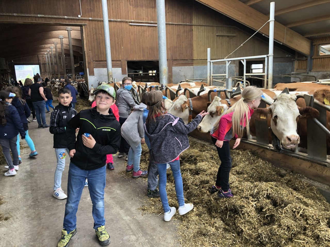 Die dritte Klasse hat sich im Rahmen der Projektwoche der Frage „Woher kommen unsere Lebensmittel?“ gewidmet. Im Fokus standen dabei Milch und Eier. Um einen Einblick zu gewinnen, haben wir den Erlebnisbauernhof in Reichholdsgrün besucht. Hier erfuhren die Schülerinnen und Schüler vieles über Kühe sowie Hühner und durften anschließend einen Wrap aus Zutaten direkt vom Bauernhof zubereiten und verspeisen.