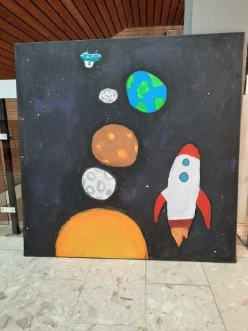 Im Modul „Malen mit Acrylfarben auf Leinwand“ fertigten die beteiligten Schülerinnen und Schüler aus den Klassen 5 - 8 beeindruckende Kunstwerke. Im Rahmen der Kooperation mit dem JUKU-Mobil im Landkreis Wunsiedel konnten die jungen Künstler unter fachkundlicher Anleitung durch Frau Hähnlein ihre kreativen Fähigkeiten und Talente auf die Leinwand bringen. Die entstandenen Kunstwerke werden im neugestalteten SMV-Aufenthaltsraum an der Decke bzw. an den Wänden montiert.