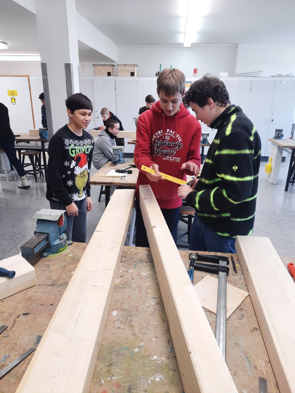 Klassische Zimmermannsarbeiten führten Schüler und Schülerinnen der 5. bis 9. Klasse an drein Nachmittagen aus. Mit freundlicher Unterstützung durch die Firma GELO in Weißenstadt gelang es, eine solide Sitzgelegenheit für Wanderer zu zimmern. Bald können sich Wanderer im Bereich des Granitlabyrinths am Buchhaus zur Brotzeit niederlassen. Hiermit leisten wir einen Beitrag für den Naturpark Fichtelgebirge.